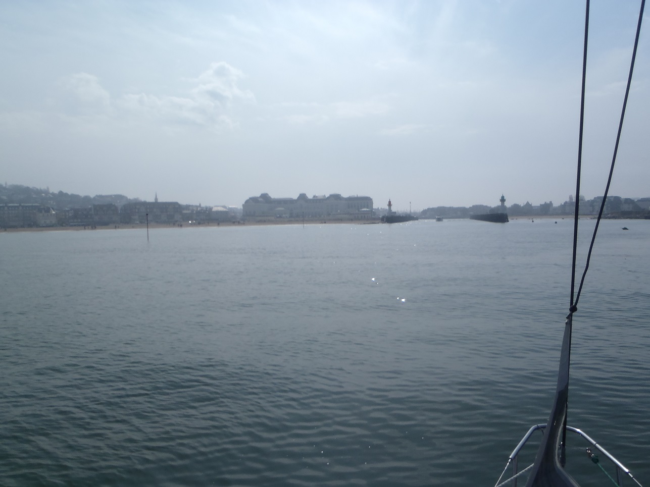 Samedi 14 avril: convoyage du bateau à Deauville avec Abel ,Xavier et Jolly Jumper, les rayons du soleil traversent la brume de l’estuaire.