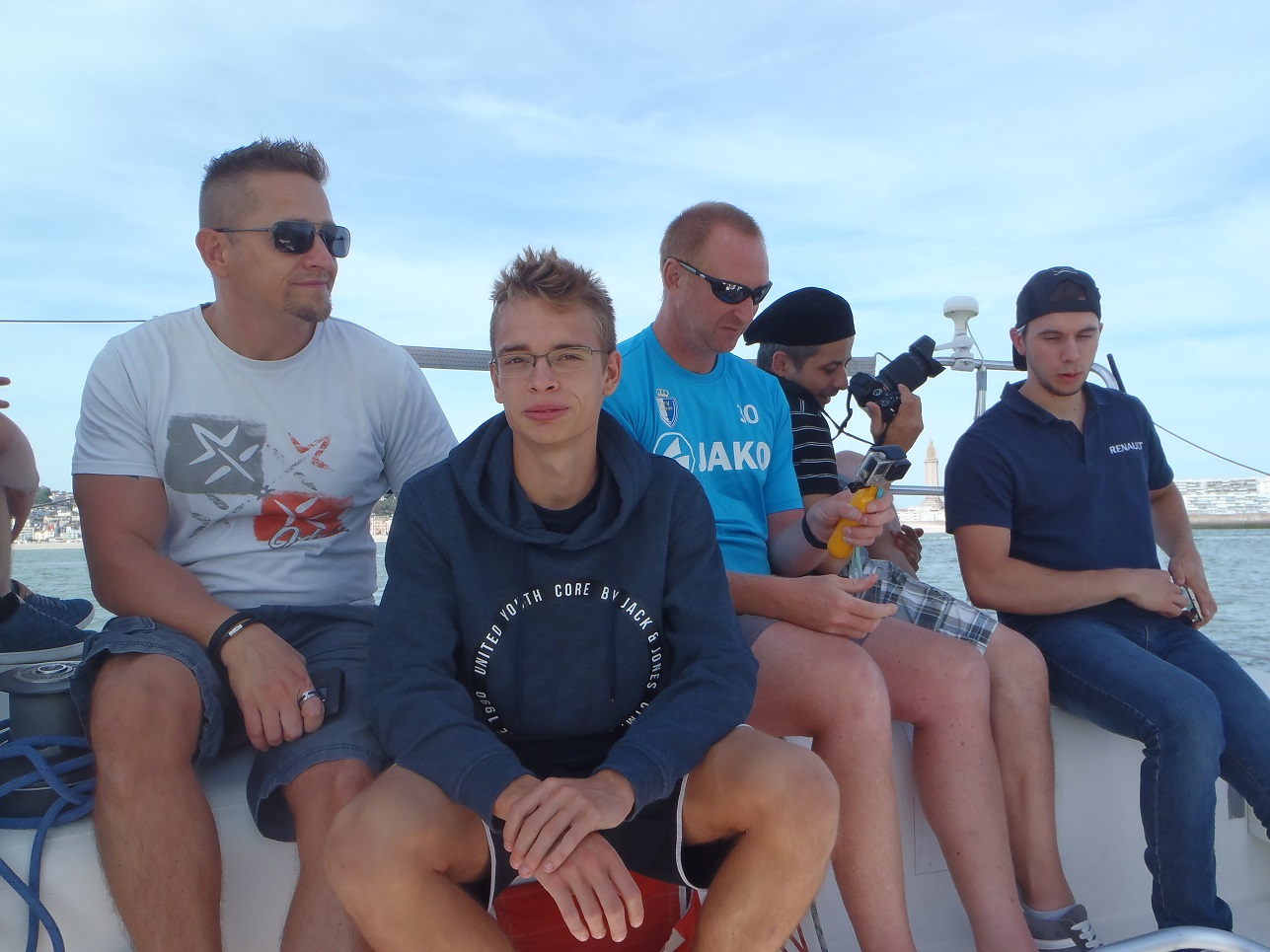 Bah, on n'est pas sorti pour rien, on va chercher le vent à la Hève. Au moteur, l'activité n'est pas débordante sur un voilier, voir même on s'emmerde ! Les plus téméraires de l'équipage décident de survivre, et de pécher !